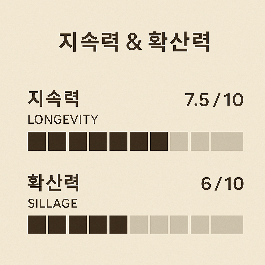 🟡 4. 지속력 & 확산력 – 은근히 오래가는 잔향